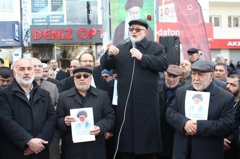 Iğdır Ehlibeyt Âlimleri Derneği’nin öncülüğünde Iğdır’da bir araya gelen müminler Ayetullah Seyyid Ali Hamanei’nin şehadeti için taziyelerini sunduktan sonra terörist Amerika ve İsrail’i tel'in ettiler.