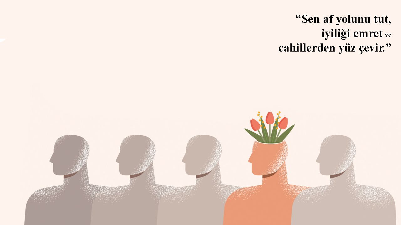 “Sen af yolunu tut, iyiliği emret ve cahillerden yüz çevir.”