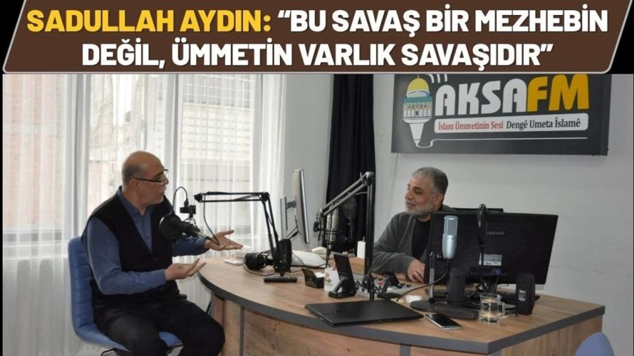 Batman’da yayın yapan Aksa FM’de konuşan Gazeteci Yazar Sadullah Aydın, İslam coğrafyasına yönelik saldırıların ortak bir planın parçası olduğunu belirterek, “Bugün zaman vahdet zamanıdır; ümmet ya birlikte direnecek ya da parçalanacaktır. Bu savaş bir mezhebin değil, ümmetin varlık savaşıdır,” dedi.